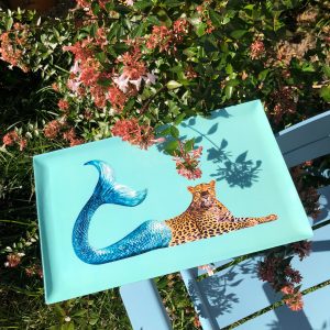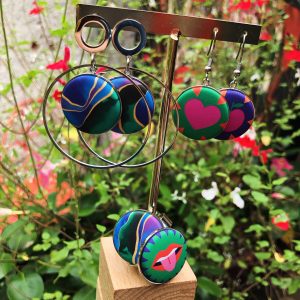 Mobilier, plateaux, verres, couverts, stylos, T-shirts, tableaux, la couleur est partout.