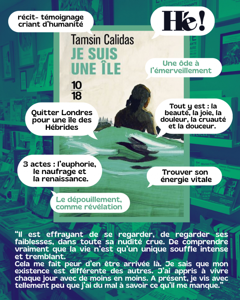 - Hé! Je suis une îleHé! Laissez-vous emporter par la plume immersive de Tasmin. Un désir dépaysement se mue en succession d’épreuves et nous révèle…