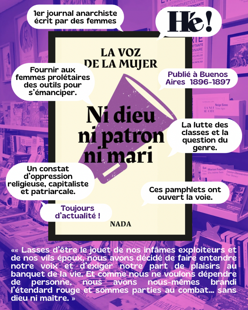 - Hé! Ni dieu, ni patron, ni mariHé! Des textes saisissants sur la condition féminine et ouvrière. Un intemporel à déguster sans modération.