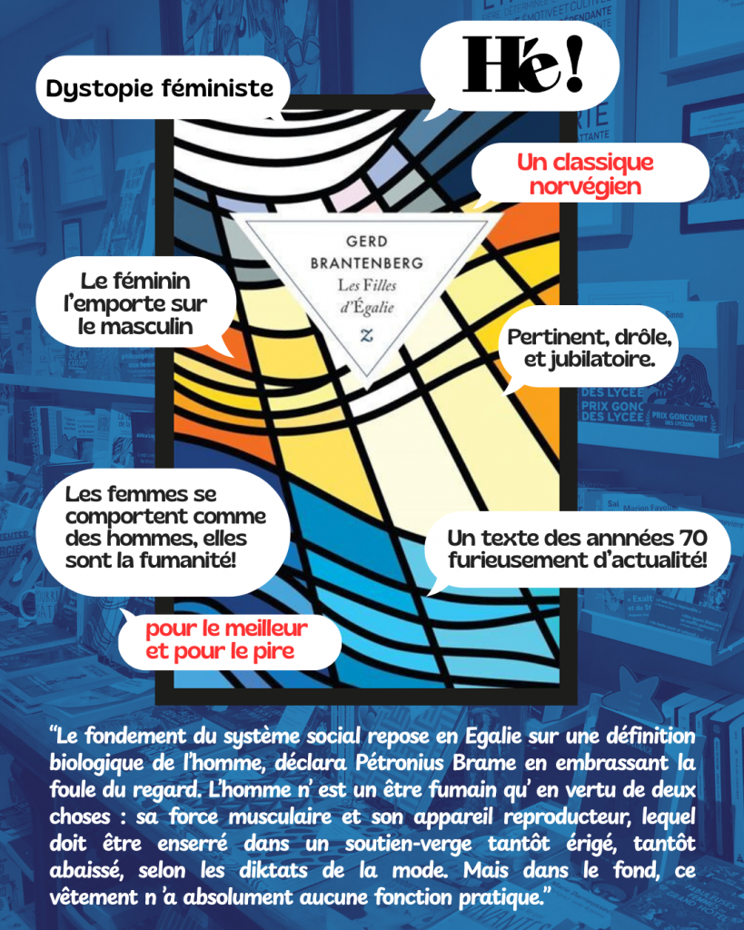 Gerd Brantenberg est une autrice féministe avant-gardiste née à Oslo en 1941. Avec « Les filles d’Egalie », elle signe un roman culte qui renverse les codes avec humour. L’inventivité de l’écriture sert à merveille la satire de notre société!