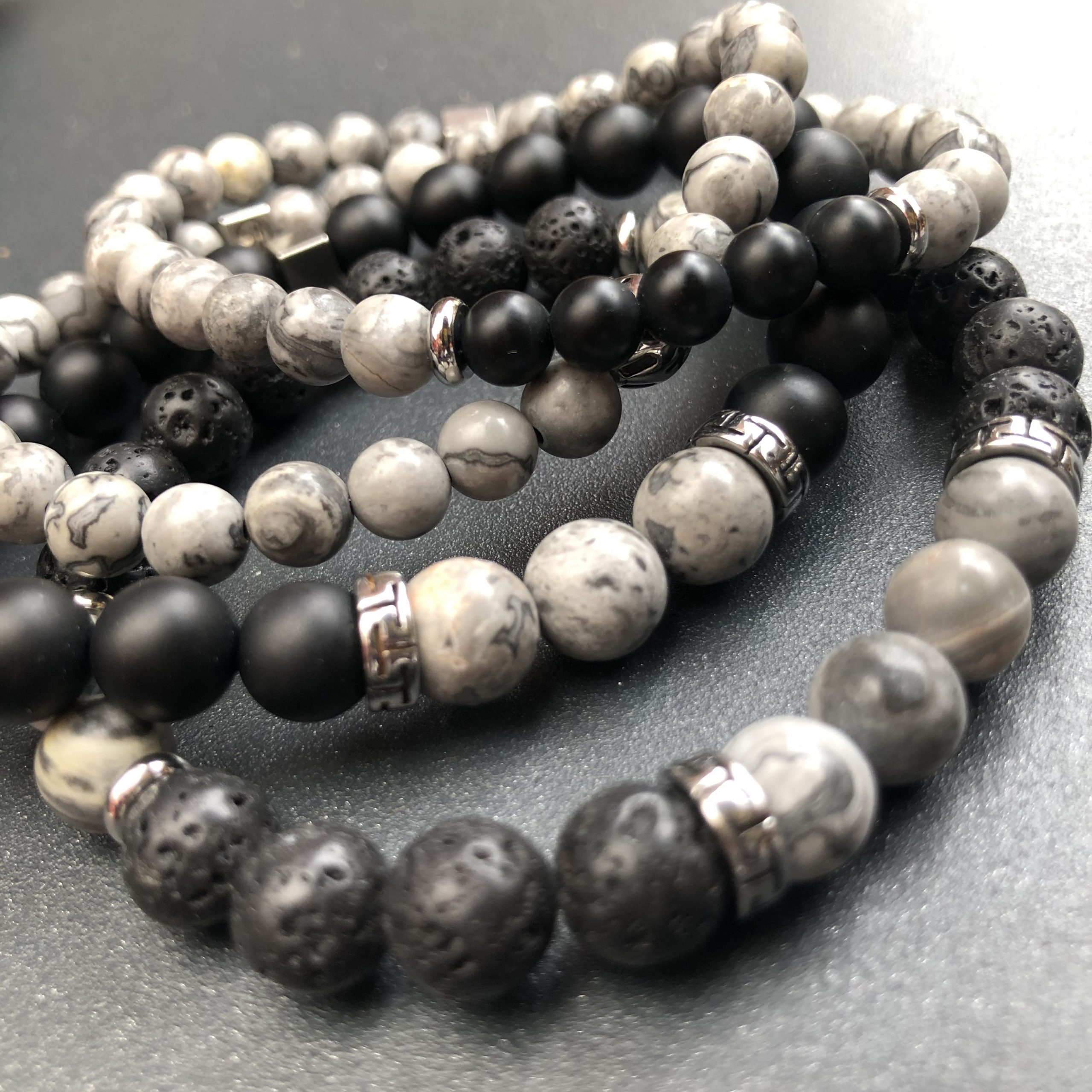 Cette marque française associe des perles naturelles entre elles telles que l’opale, la pierre de lave, l’agate, la sodalite, le jaspe ou encore l’oeil du tigre, du faucon et du taureau sans oublier le bois fossilisé.