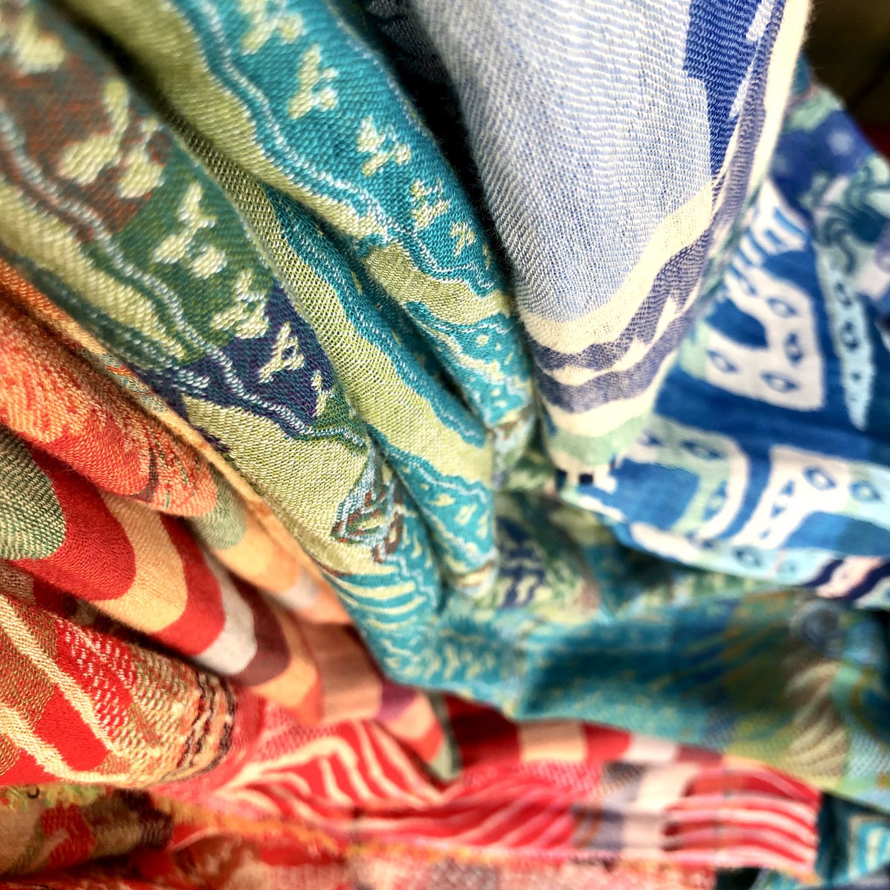A la différence d’un tissu imprimé, Létol est en tissage jacquard dont la particularité est de créer un motif par l’entrecroisement des fils de coton. Cette technique confère alors au tissu un certain relief qui rend cette matière plus « vivante», aérée et très agréable au porté et permet aussi le côté « réversible» et doublement esthétique du motif présent à la fois sur l’endroit et l’envers de l’écharpe.